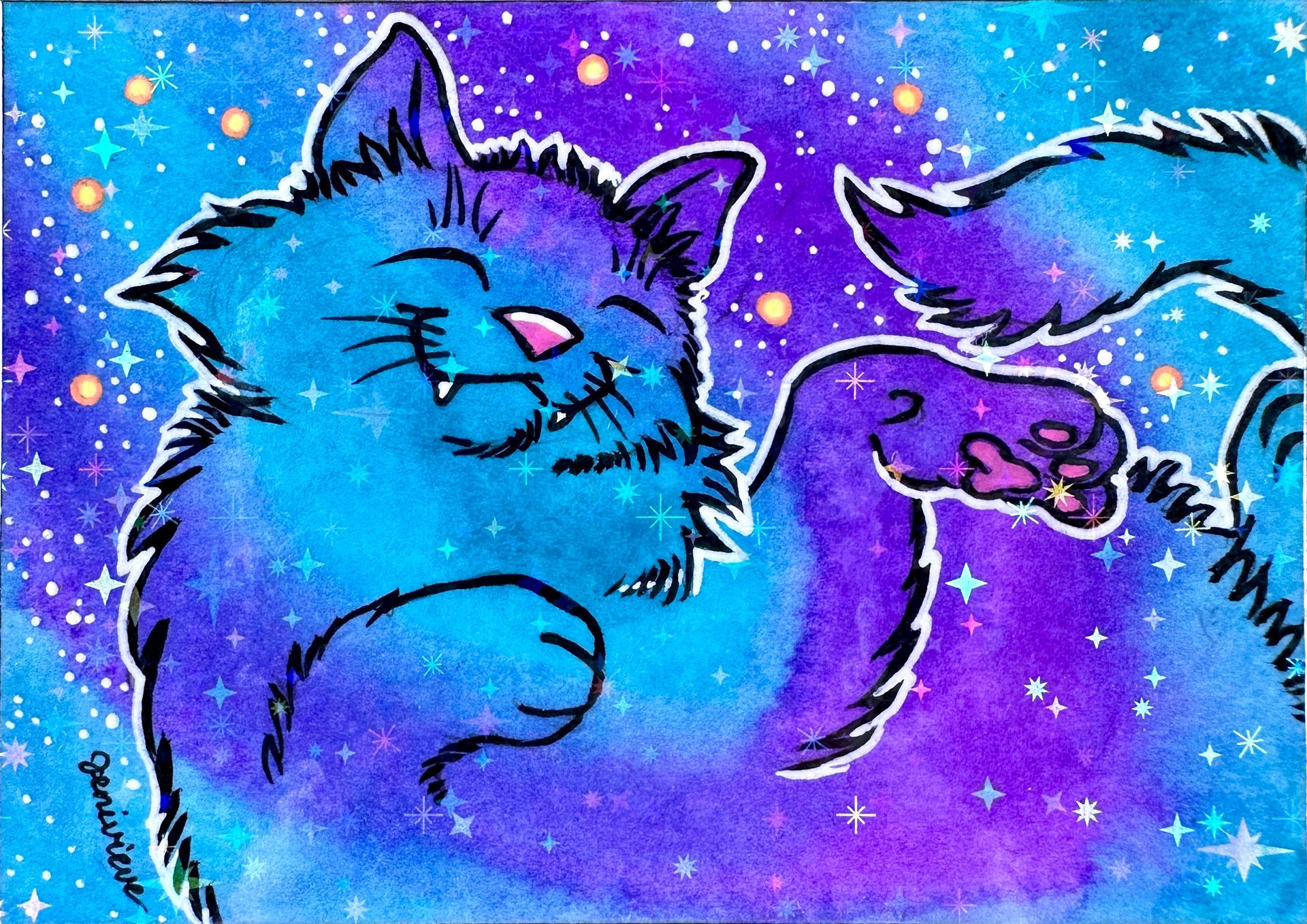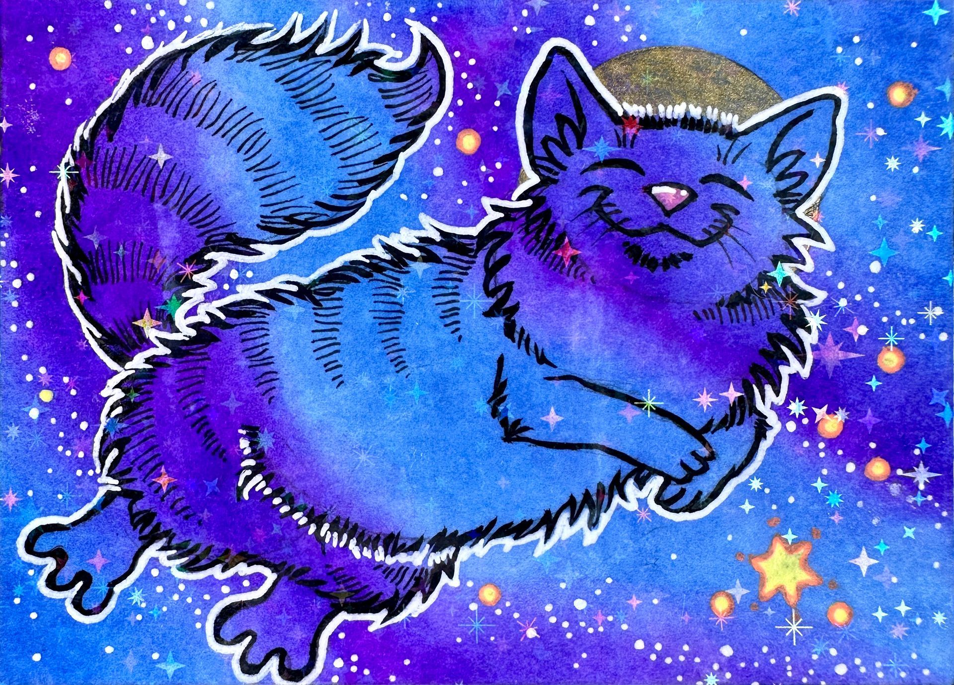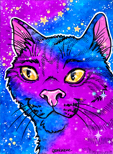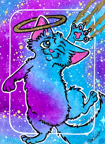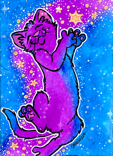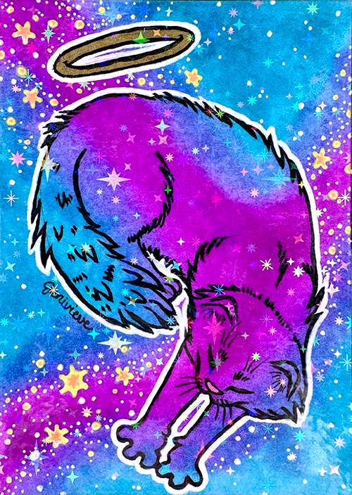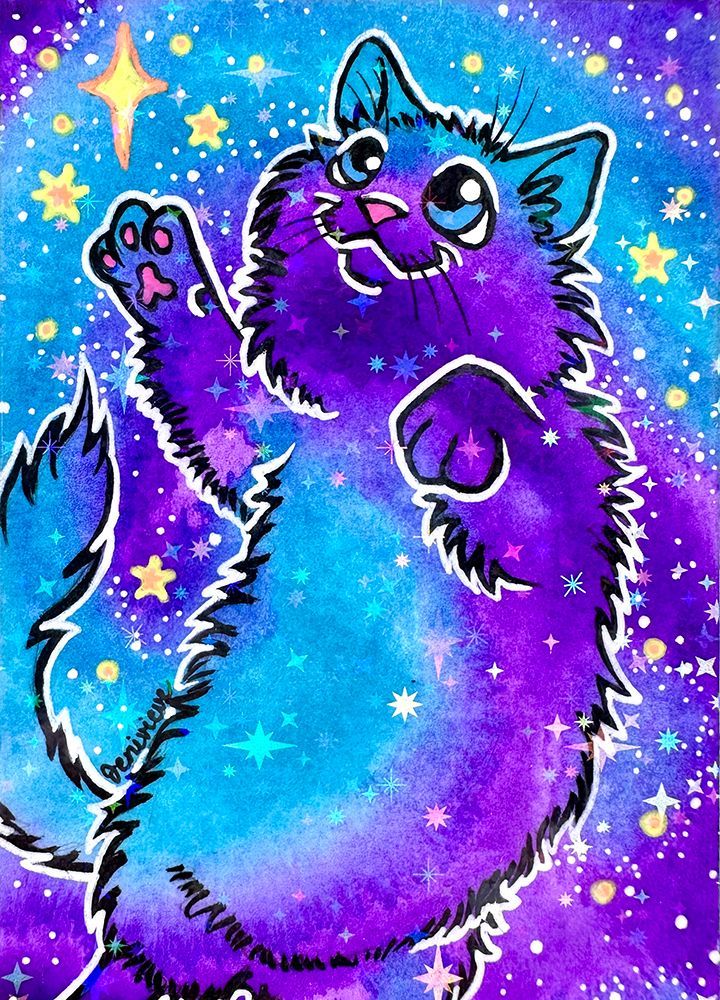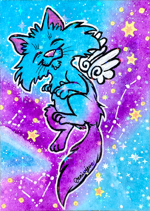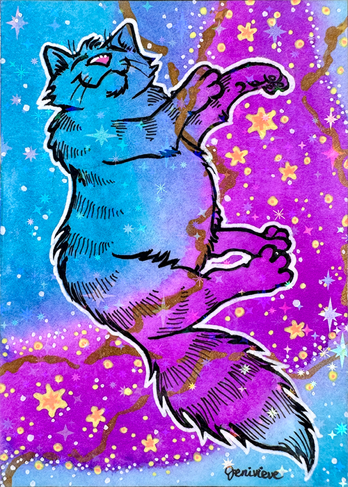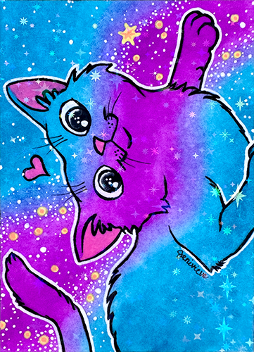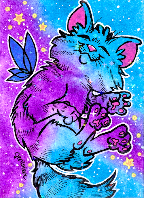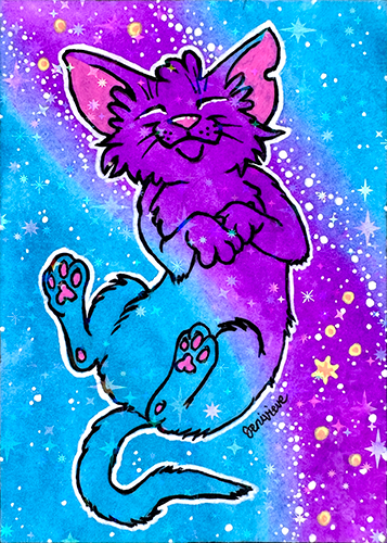 Created in Feb/March of 2026, the next Galaxy Cat ACEOs series are being dropped on eBay in sparkly floof installments! The first two installments were sold out within a week. The 3rd and 4th installments are out now. Bookmark this page and check back for each new batch!